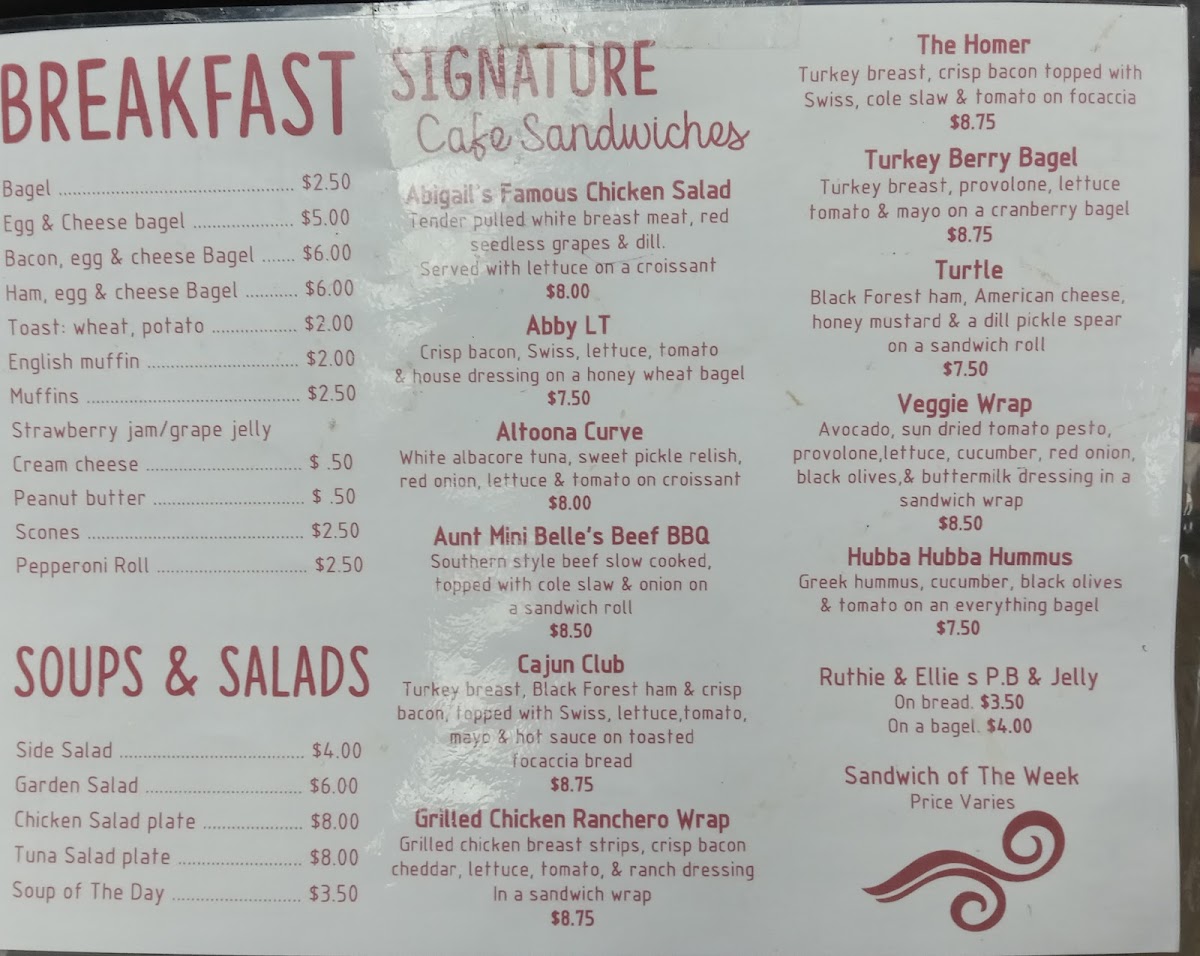 Welcome to Abigail's Coffeehouse, a charming retreat nestled in Ligonier, PA. This delightful coffee shop offers a menu brimming with crafted beverages that delight the senses. Customers rave about the Irish cold brew and Americano with vanilla and cane sugar, showcasing speed and flavor that keep patrons coming back for more.